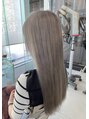 全体的に赤み、オレンジみを消してくすませながらの立体感も楽しめるカラーです。ブリーチでハイライトもいれてます!