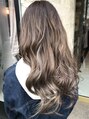 バレイヤージュの入ったスタイルに全体はアッシュブラウンでハイライト部分はグレーで染めたラフな感じが人気のスタイル☆根元から毛先にかけて明るくなったスタイルで抜け感もありお洒落♪アッシュ系カラーやデザインカラーはぜひお任せください☆