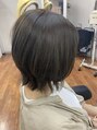裾は切りっぱなし外ハネ、前髪、サイド、トップはふんわり感を出しました。カラーは明るさを落ち着かせながらもオリーブグレージュでしっかり色味を入れました