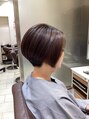 襟足をすっきり刈り上げたグラデーションボブスタイルです。後頭部にボリュームを出した丸みのある形から、サイドがアゴのラインに沿って前下がりになるシルエットが横から見た時とても綺麗ですよ。