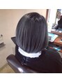 ブリーチでハイライトをベースは暗めのブルージュアッシュで立体感をカットは重さを残した丸みのあるボブで