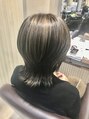 全体的にブリーチでハイライトをベースは8レベルのベージュアッシュカットは伸ばし中なのでレイヤーをさらに入れて軽さを調整してエアリーウルフカットに