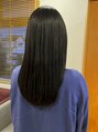 長い髪をパツンとばっさり切らせて頂きました。カラーリングもボルドー系から、明るめサファイヤカラーに!寒くなって来て髪を下ろすお洒落もいいですね!とってもお似合いです!アフターケアのアドバイスもさせて頂きました。