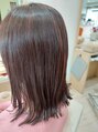 グレーカラーで色味はパープルブラウンカラー。前処理クァンタムトリートメントをしてからカラー。後フルコーストリートメントでしっかり補修しています。
