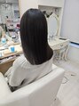 かなりクセが強い方なので、縮毛矯正をしています。ダメージを最小限に抑えれるように、髪質に合わせたトリートメントを使用してサラサラストレートに仕上げています。