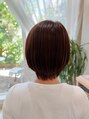 グラボブショートで扱いやすい長さ。サイドは少し軽くめにしています。カラーはシナモンアッシュカラーで、退色しやすい方におすすめです。色味が落ち着きます。