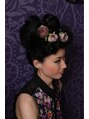 モヒカンのアップのカールの部分にバラを入れたモード系アップスタイル
