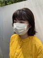 前髪もしっかりかける、ボブのパーマスタイル硬い髪質でも、柔らかくかけられる酸性パーマをしております。耳のところは少し短くしたり、とアレンジもしやすいような工夫もあり◎