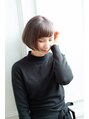 ショートはお任せ下さい!スタイルのポイントタイトな知的ショートボブ♪美術館にいそうな知的女子^ ^フォルムをタイトに前髪も透かさず斜めに流す事で知的さUP♪カラーは1度ブリーチで脱色してからグレージュをグレー多めに調合したカラーをON♪
