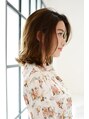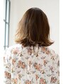 どんな人にも合わせやすいセミディレイヤー。トップと顔周りにレイヤーを入れて立体感を出し、毛先は外ハネのミックスパーマで動きをつけて。【EARTH豊崎店】