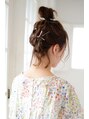 ラフに手グシで髪をあつめ、頭頂部でまとめたあと、ねじりながら根元でお団子を作ったお団子スタイル。毛先を指先で引きだしてふんわりさせるだけのカンタンアレンジ!思い切って崩すのが可愛く仕上がるポイントです。【EARTH豊崎店】