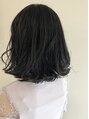 ミディアムボブベースに、軽くパーマをかけてあります。全体的にウェット感をだして、今っぽく仕上げてあります。前髪をかきわけるとセクシーですね。