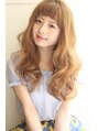 ゴールドベージュのハイトーンのルミエールカラーと大きなふんわりウェーブで透け感+フェミニンさを演出ショートバングでお洒落可愛いくモテ女子間違いなし!!顔周りに段がはいり、小顔効果も! やさしい雰囲気になります♪