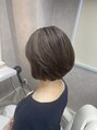 コロンとしたシルエットがかわいい丸みボブ襟足がすっきりとしているので秋冬のファッションにもぴったりです表面にランダムに入れたハイライトが白髪をぼかしてくれますかつ、束間を出してくれるのでボブスタイルにもマッチします