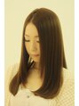 上品なブラウン系カラーにかたくならない柔らか縮毛矯正。毛先の保護剤を使ってよりダメージレスに☆