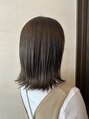 外ハネミディアムスタイルです。肩に着くスタイルなので、外ハネにしやすいヘアスタイルになっています。アッシューカラーにツヤ感を出すために紫も少しだけ入れています。