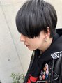 自然にひし形のシルエットになるよう質感を調整した長めのマッシュショート。ロックファンやバンドマンが好む目元の出方やうつむいた時の雰囲気を大切に仕上げました。
