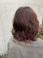 全体にウェーブ状のパーマをかけてキメすぎないラフさを出しました。前髪はくせ毛のような質感に仕上げてピンク系のカラーでフェミニンさをプラス