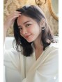 ダメージしにくい艶間アップのカラーとスタイリングしやすいロブスタイル。顔周りはかきあげ、大人クールビューティーに仕上げています。