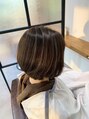 少なめにハイライトをして、グレージュカラーをオンしています。ハイライトが初めての方や控えめにハイライトしたい方はオススメです。白髪が少なめの方は白髪ぼかし効果もございます。