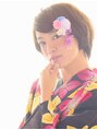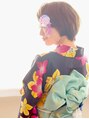 全体をラフに巻いて、前髪を大胆にサイドにネジってアレンジ。黄色とピンクのPOPな浴衣に合わせて、帯結びとヘアアクセで可愛く仕上げました!