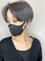 グレイ×ブルー×シルバーの低明度透明感ブラックカラー☆センターパートとロングバングが決めてのショートスタイル。