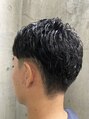 ツーブロックにしてサイドを抑えつつ、くせ毛をいかしたヘアスタイルです。ツヤのあるワックスなどをしようするとセットしやすいです。