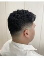 周りをフェードにしてスッキリさせて、トップは少し長さを残してクセ毛をいかしつつジェルで仕上げています。誰でも簡単にカッコよくきまります。