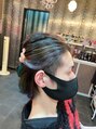 アート系トーン♪紫ベースに虹色を忍ばせた、メンズボブ。顔まわりに彩りを添えることで、動くたびに表情が変わるデザインスタイル。