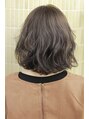 明るいベースの髪にアッシュ系の濃い目のグレージュを乗せることで、暗めでも透明感のある色に。パーマはデジタルパーマで今時のゆるふわ感を出しました。