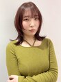 暗めカラー ピンクベージュ 前髪カット ミディアムレイヤー