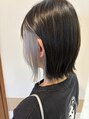あごラインより少し長いレングスの切りっぱなしボブ。耳にかけた時にアクセントになるようイヤリングカラーを。ブリーチ後、明るめのベージュをオンカラー、全体は暗めグレージュ系を。前髪は薄く短めにしてさらにおしゃれ感を。