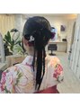 人気のカチモリヘアです!フルアップは5500円(税込)上部分はお団子でシンプルにまとめて毛先は編み下ろしをしています。ヘアアクセサリーはご持参頂いたものを使用しています!