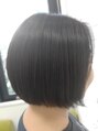 艶やかでまとまり感のある丸いシルエットのボブ。首元をすっきり見せるラインで、上品さと清潔感を両立。シンプルなのに洗練された大人のスタイルです。