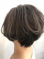 ブリーチでハイライトを10枚程度いれ、ベースは、グレージュを塗布。シャンプー台で、ハイライトのとこに、シルバーをいれましたカットは前髪長めのハンサムショート。ショートボブ、ボブはお任せください^_^
