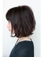 アゴラインのミディアムショートスタイルです。前髪は丸く収まるようにカットして柔らかさを出すとともに小顔効果が期待出来ます。幼くなるのが苦手な方にもオススメです。
