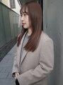 顔まわりに自然な動きを出したナチュラルストレート。重すぎず軽すぎない質感でツヤ感を引き立てます。柔らかいベージュブラウンが肌を明るく見せ、大人の抜け感を演出◎