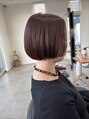 首元はスッキリ、ほんのり前上がりのラインでモードな雰囲気のBOB☆ピンクベージュ系のカラーで春らしく◎