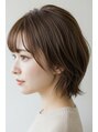 柔らかな質感と動きのあるレイヤーカット、軽やかな印象の前髪、そして耳周りの繊細なカットが特徴的です。ベージュ系の明るめのブラウンカラーが、スタイルの柔らかさをより引き立てています。