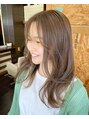 顔まわりにレイヤーをいれて動きを出したましたカラーはモノトーンベージュで透明感を出し軽く巻いたら完成です!