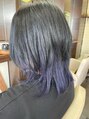 軽めのウルフレイヤーにインナーカラーを入れました。トップはシルバーブルーブラックで艶感を出しインナーはサファイヤパープルをいれました。