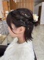 - 表面の髪が長いショートヘア、ボブに可能なアレンジです