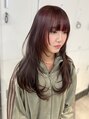 レイヤースタイルです☆高めからレイヤーを入れ、顔周りは頬にかかる長さからレイヤーを入れてあります(*^^*)カラーはピンクを強めに入れて少し赤よりになるように仕上げました☆