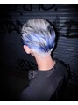 フェザーパーマ履歴から”羽”のインスパイアを受けデザインより”羽”を演出する為ホワイト・ブルー・ブラックを使ったデザインカラーに!かき上げた時の後ろ姿かっこいいです!黒は落とせる黒、ブルーは自然退色でブロンドになる為スタイルチェンジ可能◎