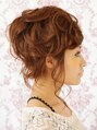 再度の高めの位置にカール&逆毛を多めにいれた個性的なアレンジ。自分ではなかなか作れない装いがポイント。元気なイメージ、ひとと差をつけたい方にオススメです