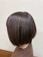 白髪染めで暗くなった髪を明るく見せるためのハイライトです!全体的にトーンが明るく見え、白髪ぼかしの効果もあります!ブリーチを多少使っていますが、細いハイライトを満遍なく入れているのでダメージはあまり気になりません!