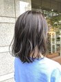 全体にハイライトを少しいれてアッシュで黄色を抑え風になびくと髪が動いているかのように見えます。