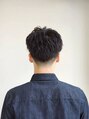 前下がりのセンターパート。毛先に少しカールが出るようにスタイリングしています。骨格に合わせた刈り上げでバックからみても綺麗です◎