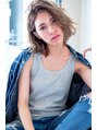 ワンレンベースのボブ スタイルにランダムなウェーブをミックス コテ巻きが苦手な方はパーマで表現グラデーションカラーで外国人風に