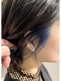 ややくびれをもたせたウルフカット。ショートボブから伸ばしかけのスタイルチェンジ。ベースカラーはグレージュ、インナーはブリーチ後にブルーを。ちらっと可愛い。